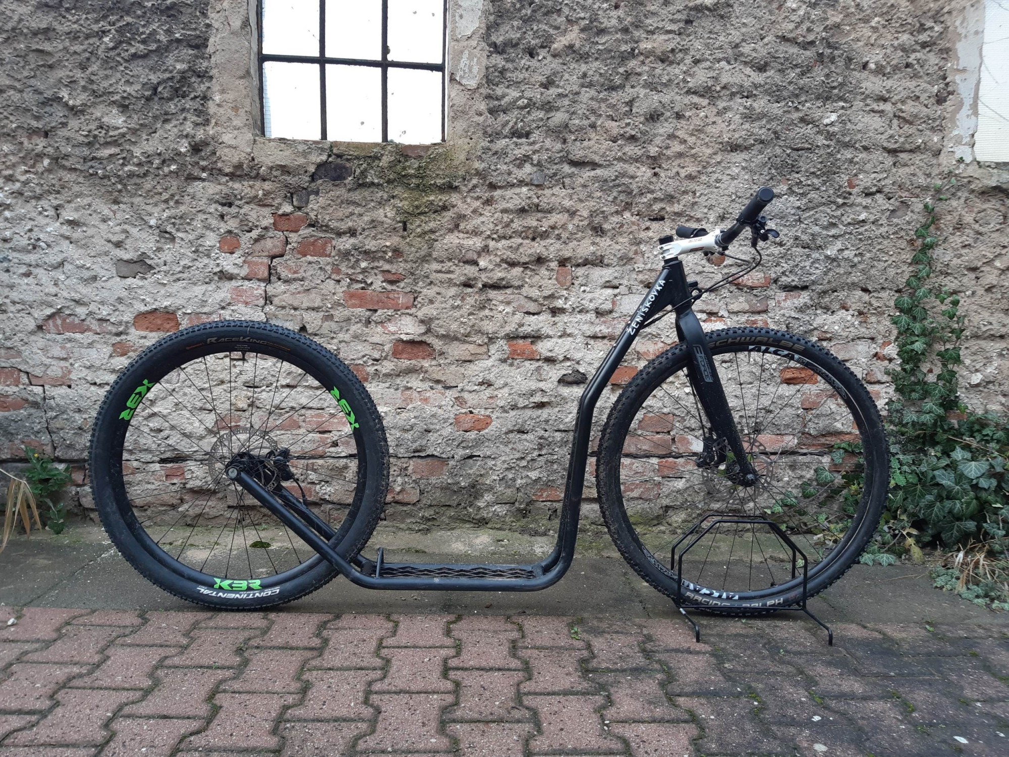 Naše premiová koloběžka. Hravá, lehká a nejen do terénu. Ověnčená úspěchy na 1000miles a v Českém krosovém koloběžkovém poháru. Kroska pod 7kg už není problém.